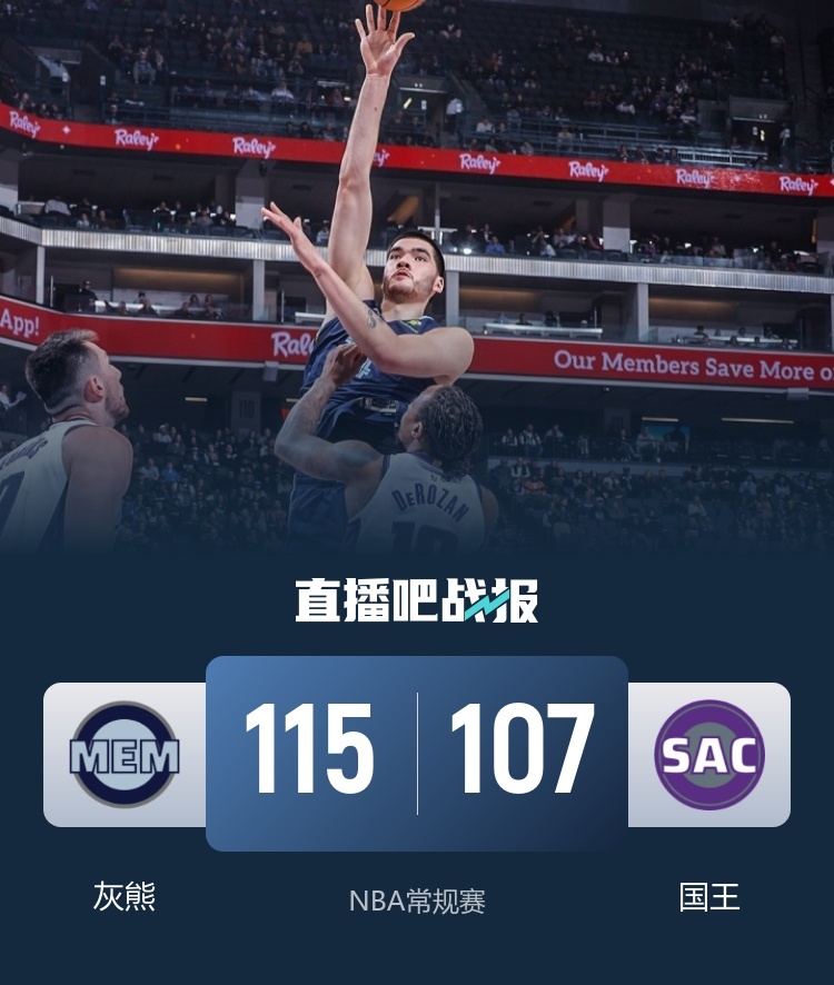 12月1日讯 NBA常规赛激战正酣,国王和灰熊两支西部球队直接交锋,灰熊迎连胜后暂列西部第9,国王遭遇连败排在西部倒数第三。